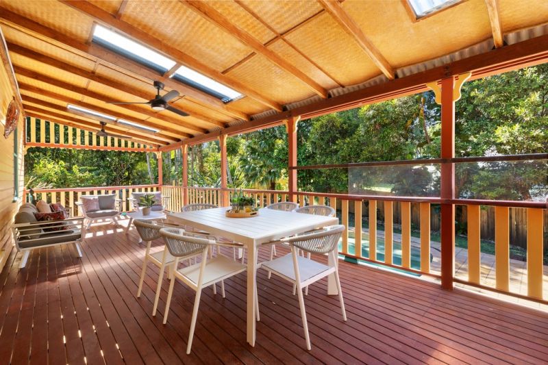 A larger Queenslander than most with five double bedrooms with flexibility to utilise one of the large downstairs bedrooms as a second living area, plus two bathrooms, one on each level. The home is complimented by two wide verandahs overlooking a sun-drenched 14.5 metre saltwater pool and generous storage plus workshop, a double high clearance carport and ample off street and under house parking.
