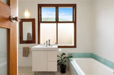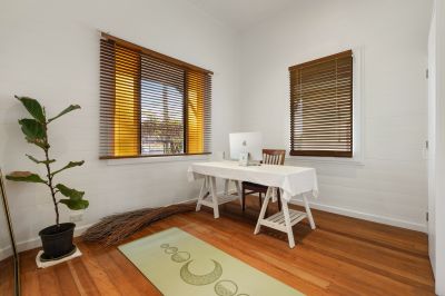 Bedrooms are generous with beautiful, polished timber floorboards and high ceilings, all with built in robes. The master bedroom overlooks a tropical back garden and opens to a very inviting and useable covered deck. The bathroom is appealing with full bath and separate shower recess, plus separate toilet.
